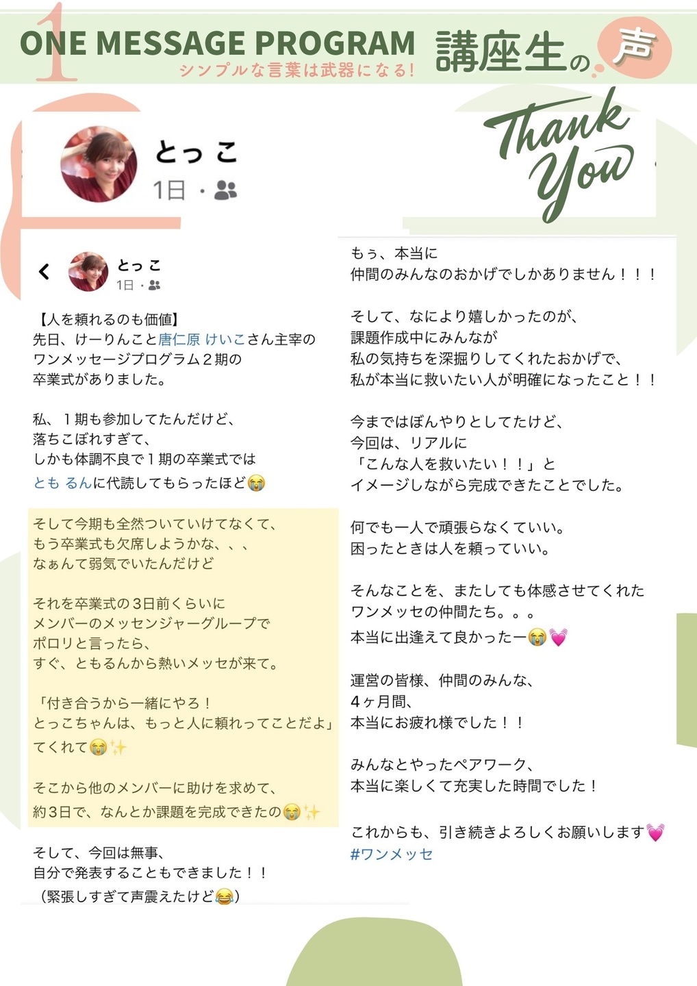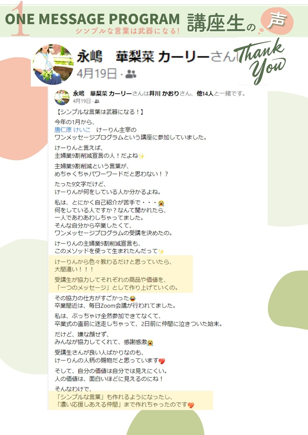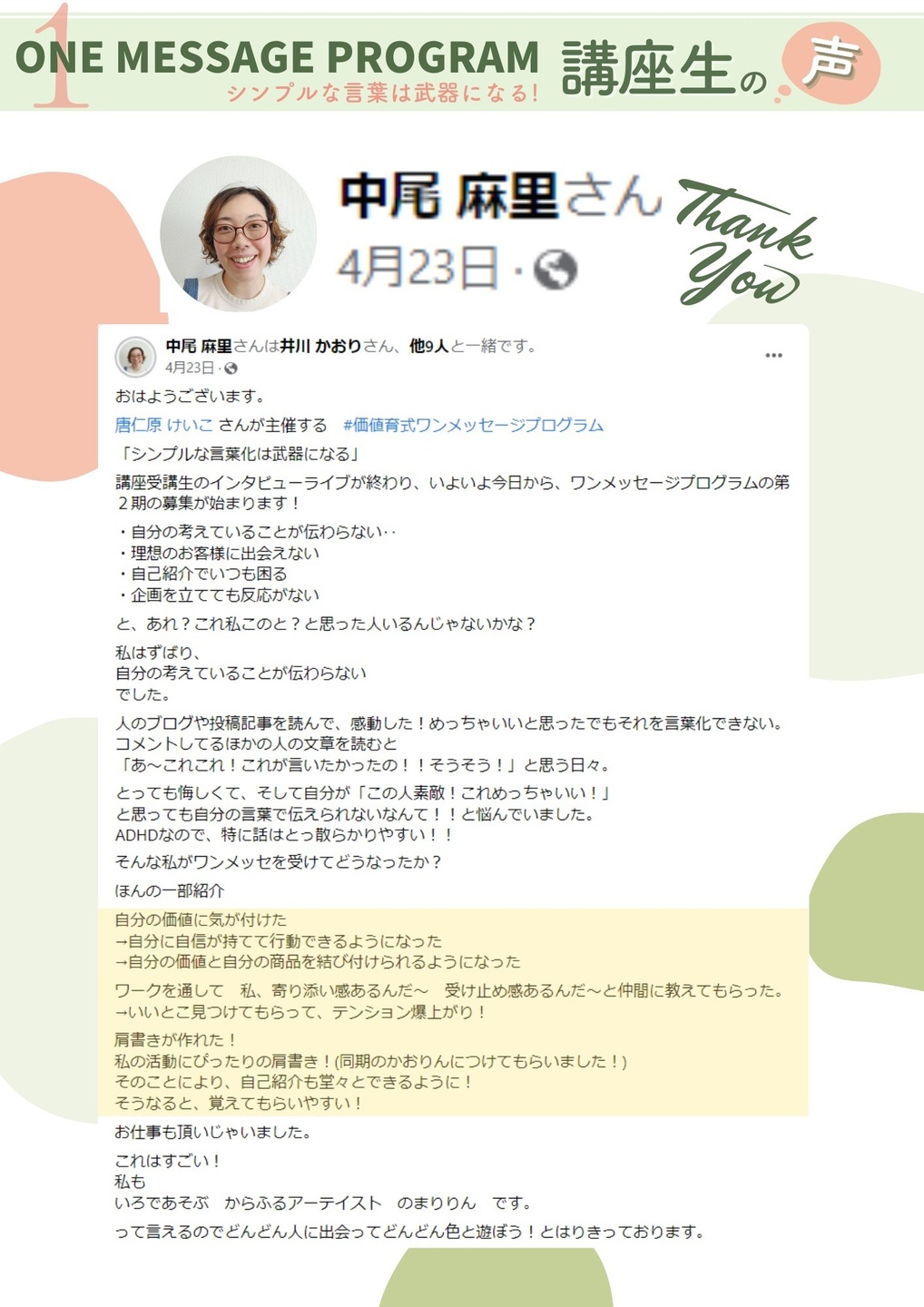 価値育式ワンメッセージプログラム卒業生の声